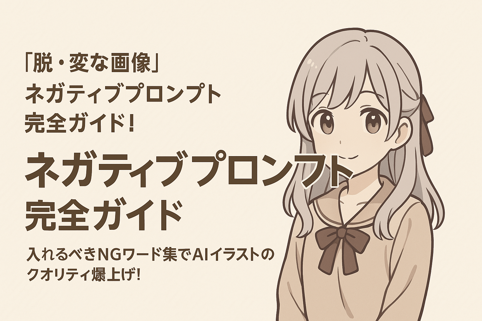 - ネガティブプロンプト (Negative Prompt): AIへの「NG指示」